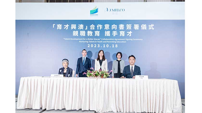 【特訊】新濠博亞娛樂(「新濠」)與澳門教育及青年發展局(「教青局」)10月18日在新濠影滙舉行「育才興澳」合作意向書簽署儀式。為支持特區政府「教育興澳、人才建澳」的施政方針,新濠將與教青局攜手合作,為身為家長的新濠同事提供親子教育培訓,加強同事在家庭教育方面的認識和技能,從而發揮家庭教育的正面影響,讓其子女在和諧美滿的家庭環境中茁壯成長。此外,公司亦致力加強與本地學校的合作,為本澳青年提供提升技能及職業實踐的機會,推動本澳的適度多元發展。新濠冀透過家校企三方合作,攜手為本澳培育更多本地人才。