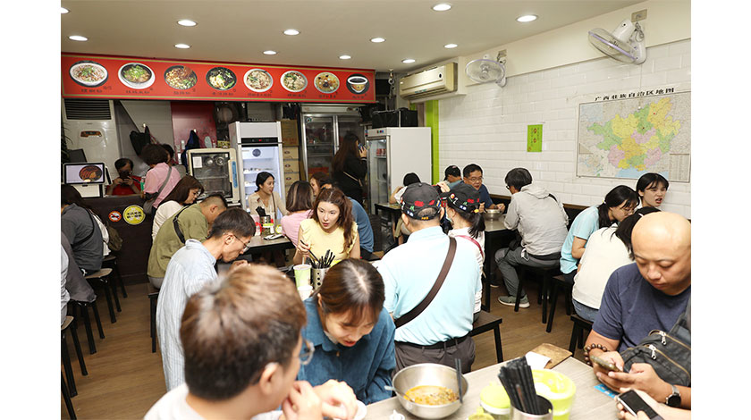 【中新社台北11月6日電】(中新社記者 陳小願)週日下午不到五點,距離台北艋舺龍山寺僅一百餘米的柳州螺螄粉店內已坐滿食客,門口候位民眾排隊,不時還有外賣員取餐。