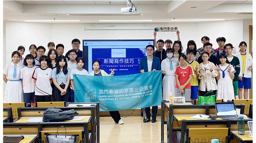 【特訊】日前,由澳門中華學生聯合總會、澳門學聯時事關注委員會主辦的“新聞寫作技巧"培訓課程順利結束,此次培訓共有二十七名時委成員參與,邀請到時事評論員黃萬濱作為主講導師,並由時委會副導師林啟鏘進行主持。活動透過理論與實踐雙結合的模式,讓學生通過寫作演練,掌握基本的新聞寫作技巧。此次課程由澳門基金會資助。