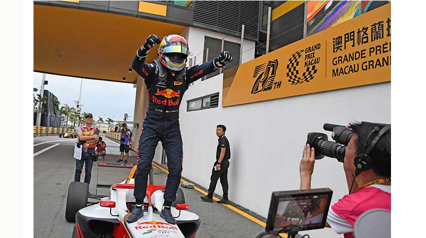 經過早上選拔賽雨戰後,由同一車隊(SJM Theodore PREMA Racing)選手林伯雷、史雷特(SLATER,27)與梁瀚昭包辦下午正賽前三位起步,不過在三度黃旗、十二圈實際賽不足三圈下,一路帶頭的林伯雷可謂很順利地在東望洋跑道以第一名衝線,取得四級方程式大賽桂冠。