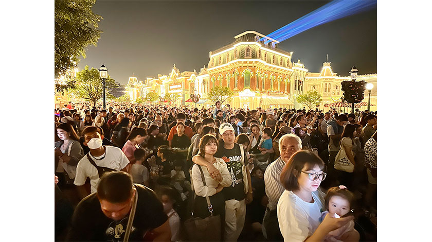 【圖片新聞】香港迪士尼樂園游人旺。香港迪士尼樂園度假區在11月推出全球首個《冰雪奇緣》主題園區魔雪奇緣世界後,入園人流持續復甦。圖為近日迪士尼樂園人山人海。(香港中通社)