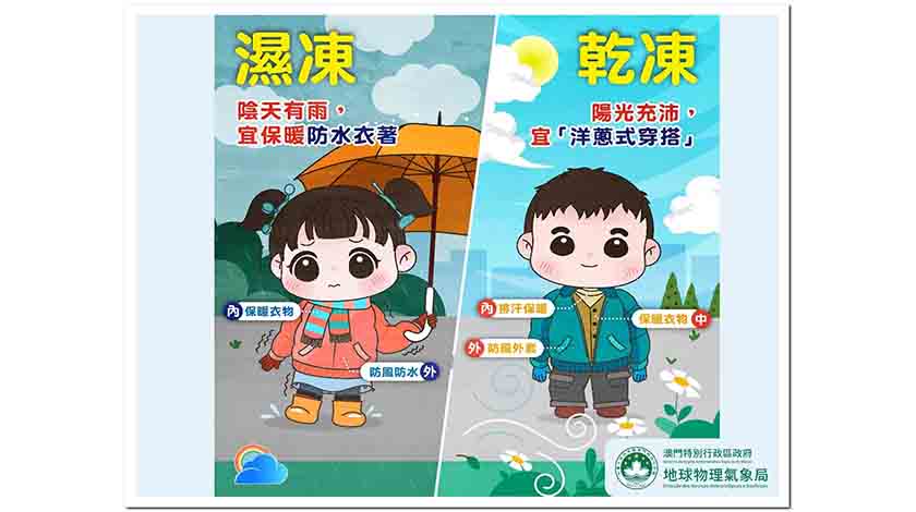 氣象局預料,隨著冷鋒於今晚抵澳後,本澳下周將出現俗稱「濕凍」的天氣,屆時氣溫將顯著下降、多雲有微雨,且風力較大,身體實際感受到的氣溫會更低。