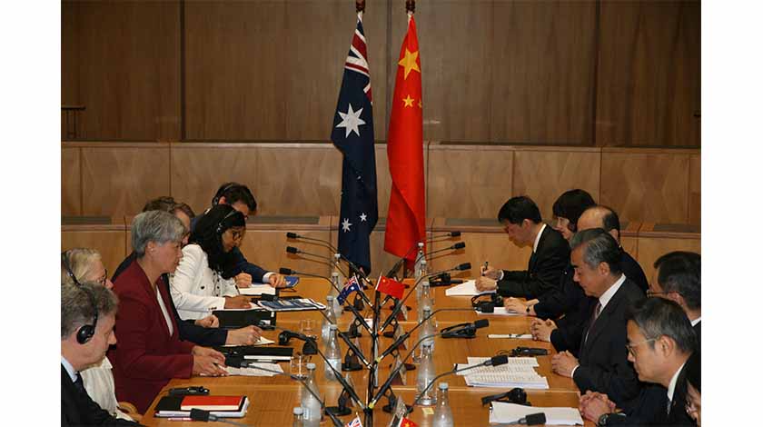 王毅闡述了中方在台灣、涉港、涉疆、涉藏、南海等問題上的原則立場,強調中澳兩國之間沒有歷史恩怨糾纏,沒有根本利害衝突,共同利益遠大於分歧。雙方要踐行尊重國家主權和領土完整這一國際法基本準則,尊重彼此核心利益和重大關切,推動兩國關係持續穩定健康發展。