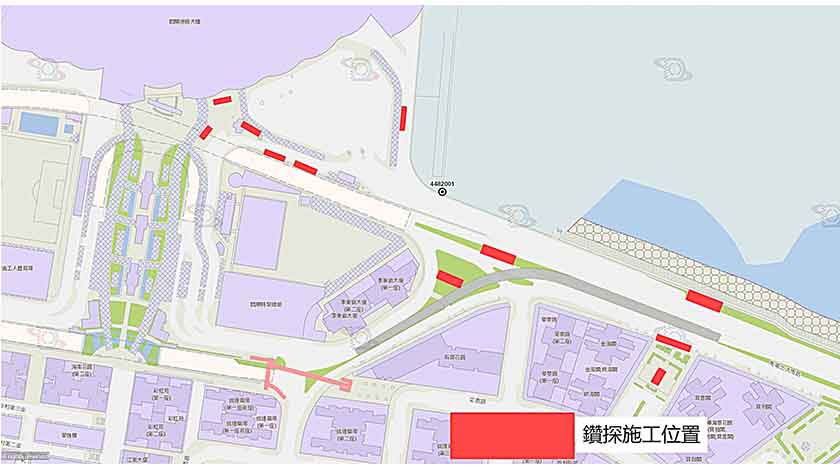 輕軌東線北段地質勘探施工工程範圍示意圖