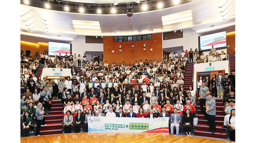 【特訊】由澳區省級政協委員聯誼會、澳門特別行政區政府體育局聯合舉辦,澳門城市大學承辦的“政協委員進校園 X 國家奧運健兒訪澳系列活動”之城大專場活動昨(25)日在城大氹仔校區文化中心舉行。澳區省級政協委員會聯誼會會長馬志成,常務副會長黃天松、陳志玲,理事長呂聯苗,秘書長孫振鴻;河北省政協委員、澳門城市大學校友會副會長韓靜;中聯辦協調部副部長王建峰;教育及青年發展局高等教育廳廳長許嘉路;司法警察局處長趙朱慧敏;城大校董會副主席孔繁清、校長劉駿及國家奧運健兒代表團等出席活動。