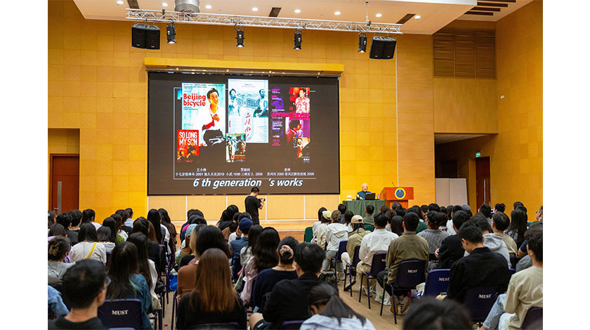 【特訊】2024年10月28日,由澳門科技大學人文藝術學院主辦,澳門教育及青年發展局贊助的藝術名家系列講座之二五九場邀請到中國著名導演謝飛蒞臨澳門,為同學們帶來了一場集專業性、實踐性、歷史性、前瞻性於一體的專家講座。澳科大人文藝術學院電影學院助理院長張林明副教授主持講座,並代表學院向謝飛導演致送紀念品,謝飛教授則向學院贈送他的兩本簽名著作《謝飛導演創作》與《謝飛觀影筆記(1957-1962):一個甲子的回望》。