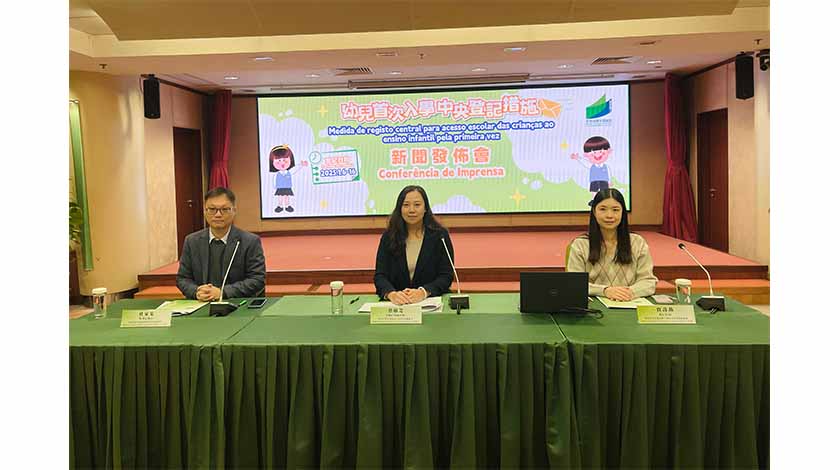 教青局昨假教青局仲尼堂舉辦新聞發布會,由教青局非高等教育廳長蔡敏芝、小學及幼兒教育處長賈詩燕、資訊及科技處長杜家豪,介紹二零二五/二零二六學年 “幼兒首次入學中央登記措施”。