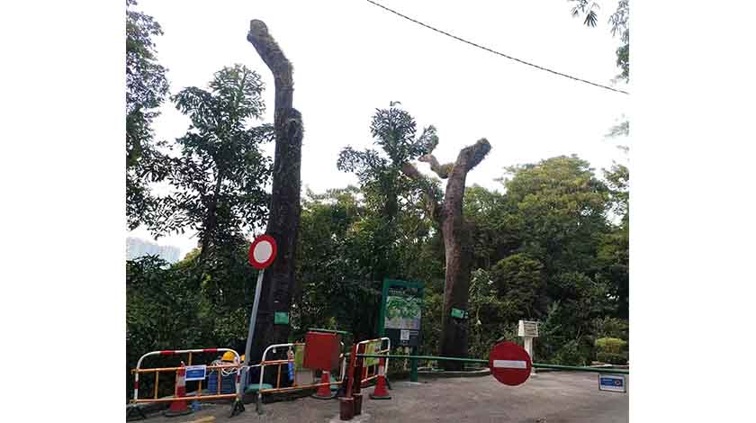 【特訊】市政署持續跟進及護理松山市政公園兩株石栗古樹(見圖),惟救治期間雖已採取病蟲害防治、施肥及施藥等措施,惟古樹生長狀況未見好轉並已枯萎。為保障公眾安全,將於下月初移除兩株枯樹。工程期間敬請市民遵循現場指示,切勿進入圍封範圍,以免發生意外。