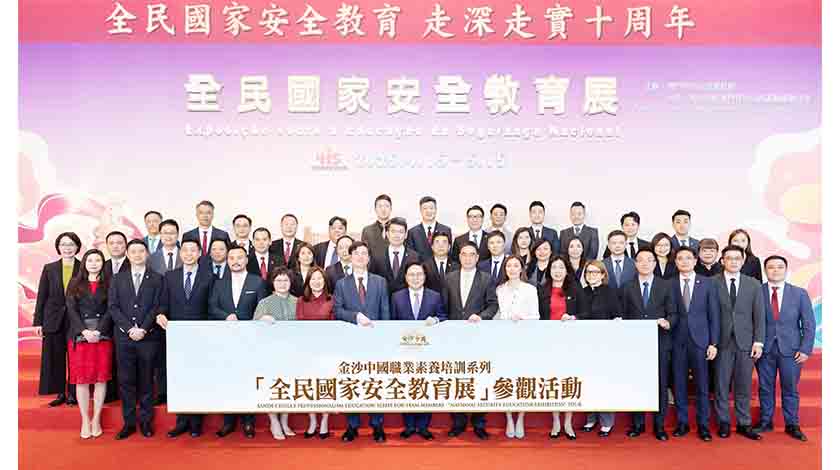 【特訊】適逢今年4月15日為國家第十個「全民國家安全教育日」,金沙中國有限公司行政副主席王英偉博士、行政總裁兼執行董事鄭君諾及行政副總裁兼財務總裁、威尼斯人澳門股份有限公司常務董事孫敏其周二率領一眾公司管理層成員約50人,前往中國與葡語國家商貿合作服務平台綜合體參觀2025年「全民國家安全教育展」,冀進一步強化員工及年青一代對維護國家安全的意識,並增進他們對國家大局觀的深切了解,傳承愛國愛澳情懷。