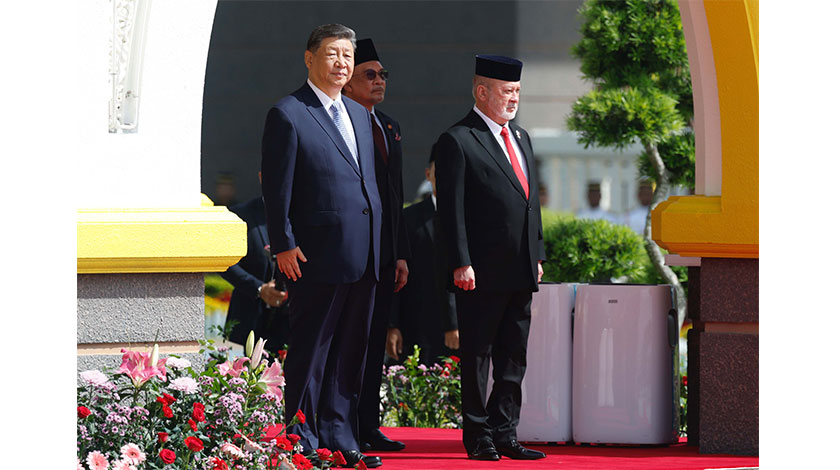 習近平乘車抵達時,易蔔拉欣和馬來西亞總理安瓦爾在下車處熱情迎接。兩國元首登上檢閱台,軍樂團奏中馬兩國國歌,鳴禮炮21響。習近平檢閱儀仗隊。兩國元首進入國家王宮大廳,同雙方陪同人員握手致意。歡迎儀式後,習近平會見易蔔拉欣。