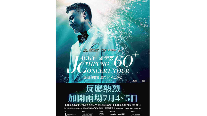 【特訊】華語樂壇「歌神」張學友第十個個人演唱會——《「澳門銀河」榮譽呈獻 FWD 富衛保險冠名贊助–張學友 60+巡迴演唱會 澳門》將於今年 6 月在澳門最大的室內綜藝館——銀河綜藝館連開 6 場以饗樂迷,門票均已火速售罄。在一眾「友迷」的殷切盼望下,是次澳門凱旋站將於 7 月 4、5 日加開兩場,并且早前售罄的首 6 場將特別加開極少量澳門幣 1988 元座位(視線受阻區)。張學友將成為銀河綜藝館開辦個人巡演場次最多的天王級歌手。加場場次門票及首 6 場加開座位門票將一同於4 月 22 日中午 12 時通過銀河票務、FWD MAX、大麥、BOOKYAY、貓眼、uutix、Mpay 澳門錢包 APP、澳門售票網、紛玩島小程序同步公開發售。