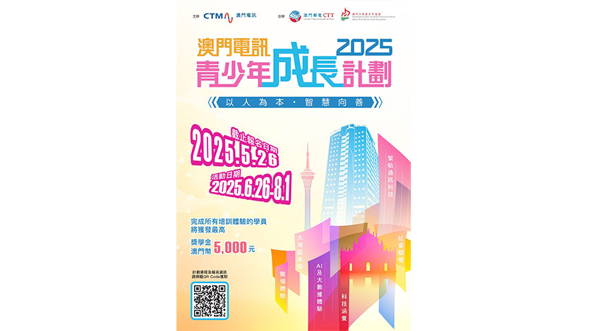 由即日起至5月26日,凡年滿18歲或以上,就讀中學或大學之本澳青少年均可報名參加,有意參與的青少年可於澳門電訊官方網站(www.ctm.net)專頁中瞭解活動章程及網上報名。
