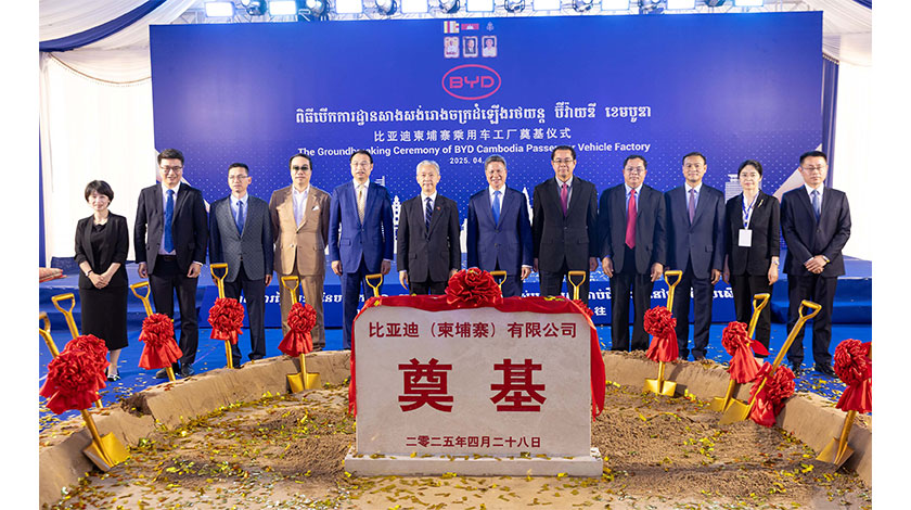 汪文斌表示,比亞迪柬埔寨乘用車工廠奠基是中柬經貿合作的一項重要成果,具有標誌性意義。這是中國汽車品牌在柬設立的第一個生產項目,對於加快柬埔寨工業化進程、密切中柬產供鏈合作將發揮有力推動作用,也將為推進中柬“工業發展走廊”建設注入新的強勁動力。