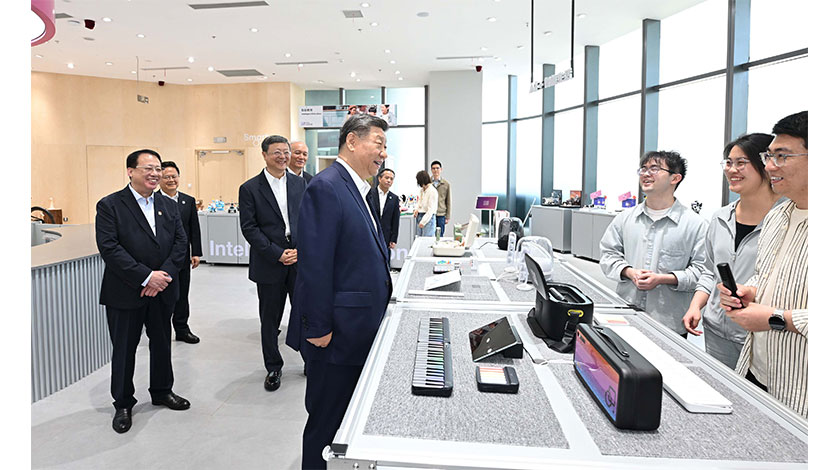 隨後,習近平走進人工智能產品體驗店。櫃檯上,智能眼鏡、智能兒童玩具、智能樂器等創新產品琳琅滿目,習近平詳細瞭解產品功能和市場行情,還饒有興致地戴上智能眼鏡親身體驗。他表示,中國數據資源豐富,產業體係完備,市場空間巨大,發展人工智能前景廣闊,要加強政策支持和人才培養,努力開發更多安全可靠的優質產品。