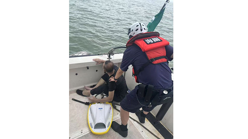 海關表示, 因應「五.一」長假,海關加強海上及沿岸部署,以預防及打擊非法出入境活動。於五月一日上午,海關快艇於巡邏期間,在路環竹灣對開海面發現一名男子正利用水上推進器向澳門沿岸游去,懷疑有人正進行偷渡活動,隨即採取行動將其截獲,帶返海關作進一步調查。