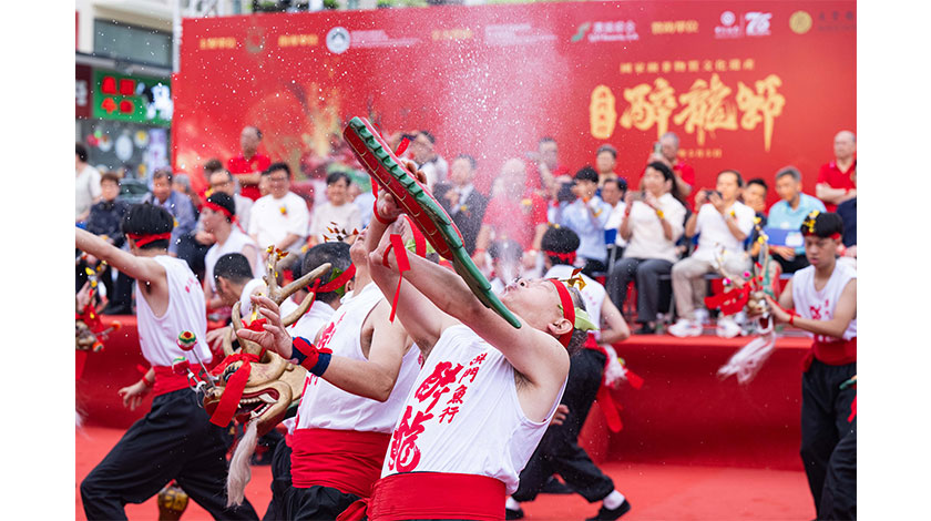 醉龍節活動昨日上午九時在議事亭前地開幕,現場舉行拜神儀式和舞醉龍表演,隨後醉龍醒獅大巡遊,約有一百三十人參與演出,巡遊隊伍途經醉龍館、新馬路、媽閣等地點與民同樂,舞者功架十足,吸引大批市民和旅客觀賞。