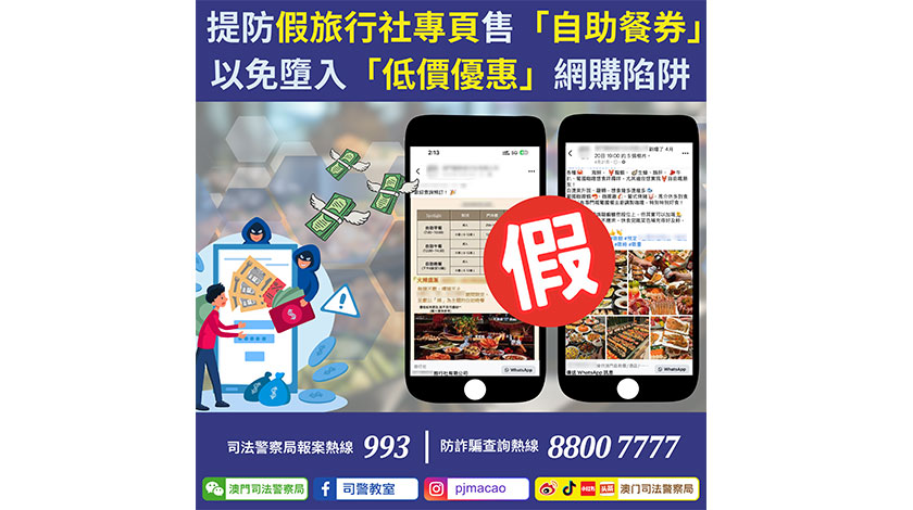 2025年4月上旬,司法警察局發現有騙徒在網上社交平台上冒充本澳多間旅行社的名義,開設虛假專頁進行詐騙。司警局隨即發出警情通告,提醒市民提高警惕,避免墮入騙局。然而,近日仍有多名市民向司警局舉報,稱遭遇類似手法的詐騙。