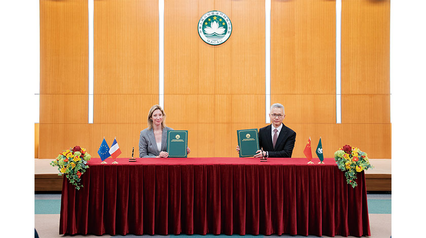 【特訊】經濟財政司司長戴建業代表特區政府與法國政府代表法國駐香港總領事館總領事杜麗緹於昨日在澳門簽署了《中華人民共和國澳門特別行政區政府和法蘭西共和國政府有關執行科研合作計劃的協議》。該協議旨在加強雙方在科研領域的交流與合作,促進科技創新和人才培養,是澳門著力打造更高水平對外開放平台的重要進展。外交公署副特派員孫向陽出席,以及高校、科技企業、法國及歐洲商會等機構代表近40人出席簽署儀式。