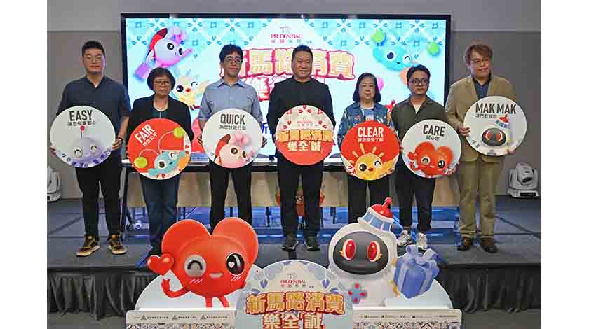 新馬路區坊會、水荷雀區坊會及板營區坊會昨聯同冠名贊助的保誠保險公司昨開發布會,介紹「新馬路消費樂全『誠』」活動。