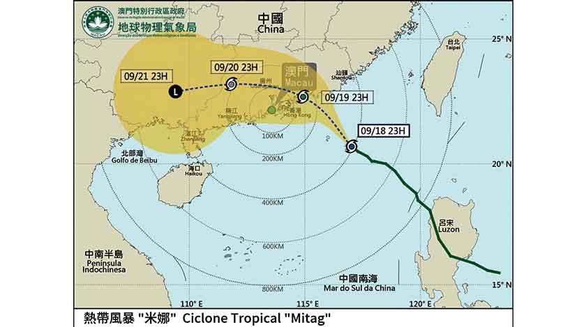 氣象局預測,「米娜」今日日間將進入本澳200公里範圍,因此今早5時至8時改發三號風球機會為高。由於「米娜」的環流範圍較小,同時其強度及路徑仍存在不確定性,有可能採取比預期更接近本澳的路徑,故不能排除改發更高風球的可能性。另預計因風暴潮出現水浸的機會較低,因此發出藍色風暴潮警告的機會較低。
