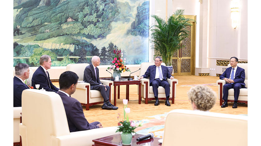 【中新社北京9月21日電】 9月21日下午,中國國務院總理李強在北京人民大會堂會見來華訪問的美國國會眾議員代表團史密斯一行。