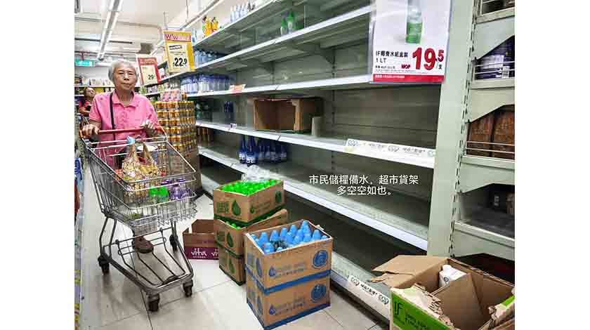 【本報訊】因應超強颱風「樺加沙」逐漸逼近,不少居民作出超前部署,自周日(二十一日)黃昏起已到超市「撲水」、「撲糧」,多間超市在昨(二十二)日早上,樽裝水已經被搶購一空,部份超市內的杯麵亦被搶購,市面氣氛緊張。