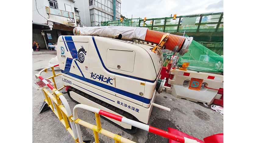 李家超透露,得知渠務署增購的4部“龍吸水”昨晚已運抵,累計10部“龍吸水”今日全數在各區投入服務,渠務署亦展示可水陸兩用排水機械人“小禹一號”以及可進入鄉郊狹窄路段的“迷你小禹”,以靈活應對不同水浸情況。