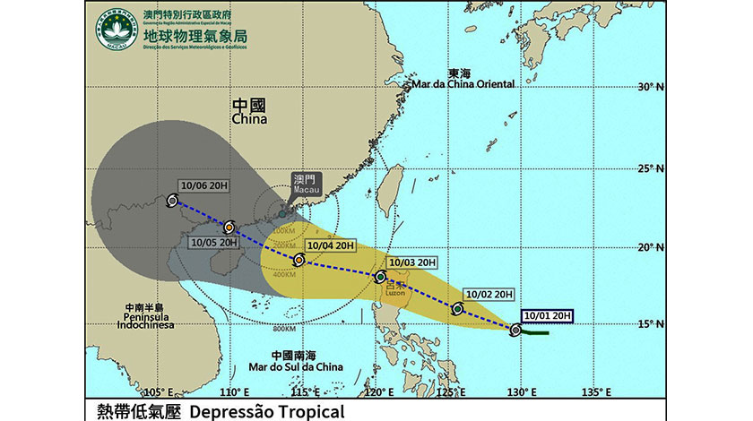 【本報訊】位於菲律賓以東的低壓區昨日已發展成熱帶氣旋,氣象局預料其明日(周五)晚間至周六初時進入本澳八百公里範圍,屆時將發一號風球。