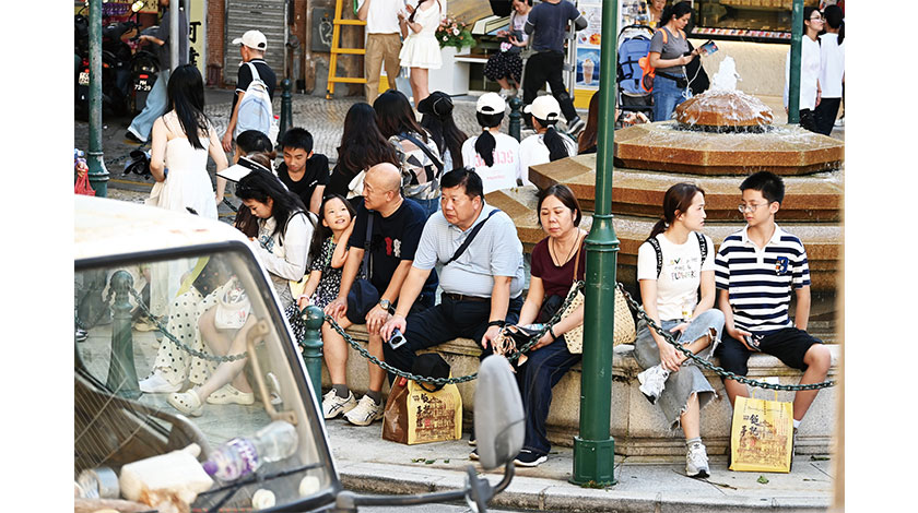 【圖片新聞】昨十一國慶黃金周第三天,本澳錄得逾十八萬旅客入境,旅遊區人山人海。警方下午再度在大三巴街人啟動人潮管制,措施實施了一小時四十五分,較有十六萬多旅客入境的前天長了廿分鐘。