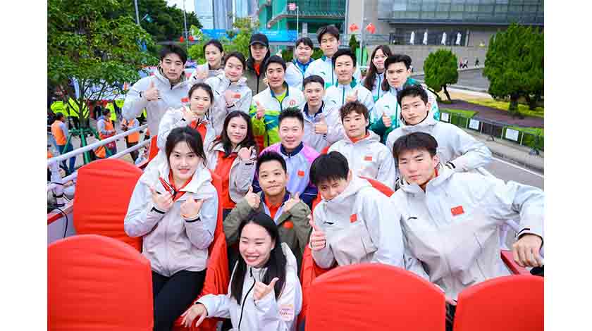 「銀河娛樂集團呈獻:『國家金牌運動員訪澳系列活動X活力行2025』」今年繼續支持及助力公益金百萬行。澳區省級政協委員聯誼會會長馬志成、中國澳門體育暨奧林匹克委員會理事會主席陳澤武,以及冠名贊助單位銀河娛樂集團主席呂耀東、企業事務董事林志成出席;與國家跳水隊領隊周繼紅、教練陳若琳、奧運金牌得主陳芋汐、昌雅妮、陳藝文、練俊傑、王宗源,以及掌敏潔、盧為、陳佳、林珊、鄭九源、胡宇康、朱子鋒、白鈺鳴等世界冠軍,以及“星級”特邀嘉賓蘇炳添、吳敏霞、李小鵬、李珊珊、何冲,還邀請了澳門運動員方文浩、鄭沘珞、陳珮琳、吳致軒等一同登上開蓬巴士,先後在觀音像和科學館附近停留,向途經的社會各界團體及參與者揮手致意,送上鼓勵和祝福。市民及參與者沿途熱情回應,吸引不少人拍照留念。