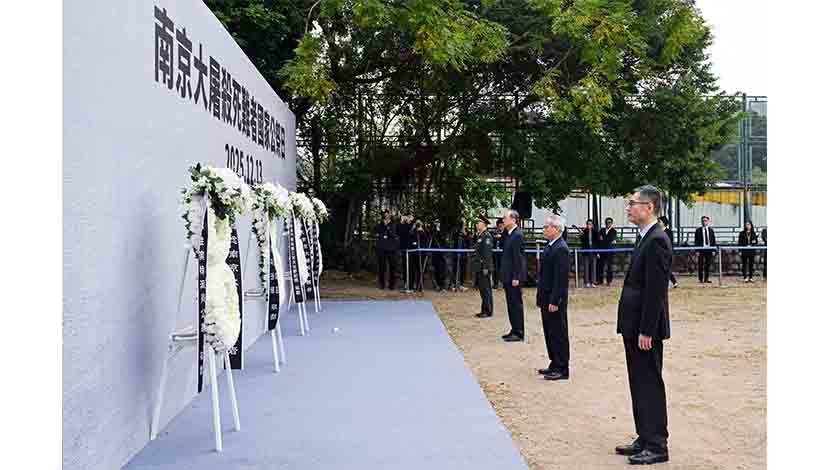 澳門特區行政長官岑浩輝、澳門中聯辦主任鄭新聰、外交部駐澳門特派員公署署理特派員程雷、解放軍駐澳門部隊司令員於長江以及特區主要官員、社會各界人士、鏡平中學師生等約450人,於日前12月13日在路環保安部隊高等學校操場舉行公祭儀式,悼念南京大屠殺死難者。