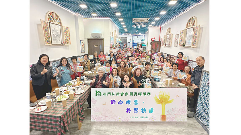【特訊】澳門扶康會家屬資源服務於本月16日慶祝冬至及回歸,與四十多位殘疾人士之照顧者舉辦「舒心暖意.共聚扶康」活動,在該會葡角餐廳共聚一堂感受節日氣氛。是次活動設有講座及聚餐兩個環節,讓照顧者在寒冷的季節裡感受到溫暖。