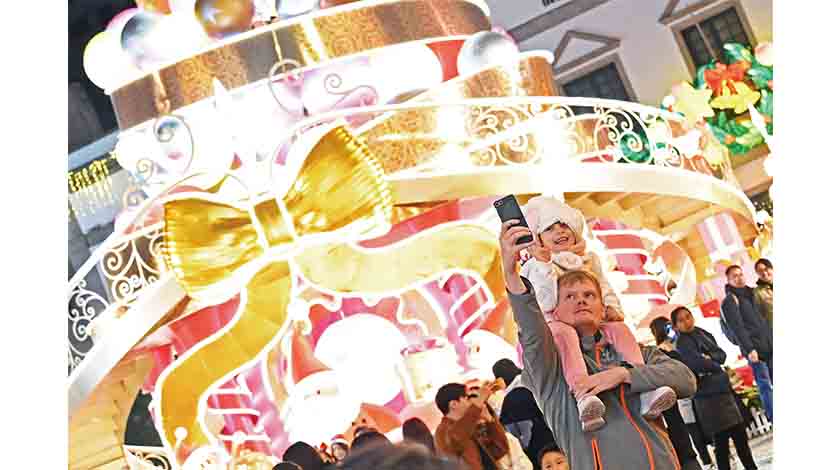 【本報訊】昨日聖誕節,本澳洋溢濃烈節日氣氛,中區以及各旅遊熱點大型精美聖誕裝飾吸引遊人觀賞打卡,議事亭前地及大三巴一帶人氣極旺,從早到晚人流不斷,當中不乏沒有聖誕假期的內地居民,他們特意休假到本澳感受濃郁的聖誕氣氛。