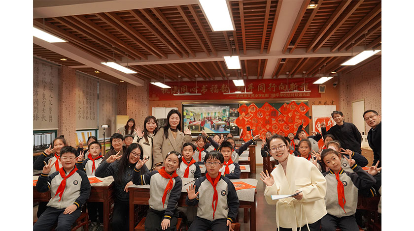 【特訊】2025年12月30日,鏡平學校與杭州市文苑小學成功舉辦“迎春祈福”線上文化交流活動。兩地四年級學生透過螢幕即時連線,共上一堂生動的書法文化課,以筆墨為媒,喜迎新春。