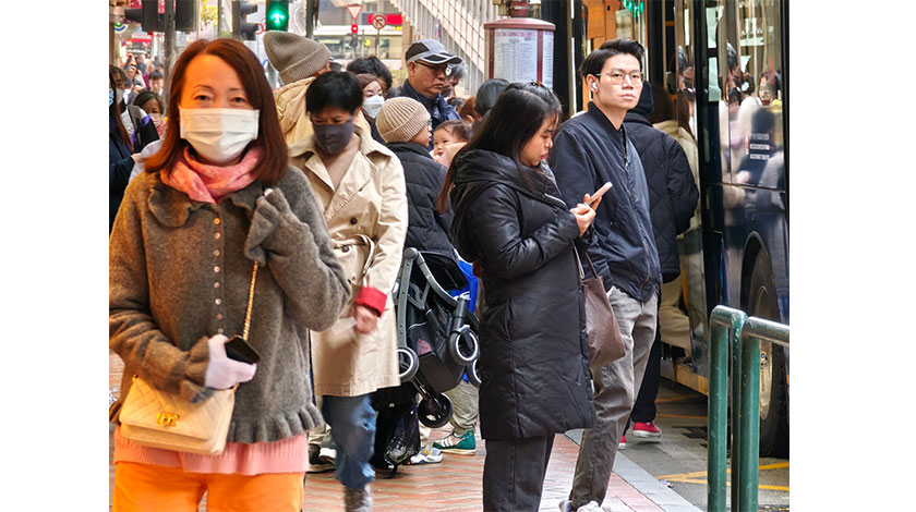 氣象局是於昨日早上七時在大潭山氣象站錄得攝氏九度的入冬以來最低溫。日間雖然陽光充沛,但走在街上仍感寒意逼人,途人普遍穿上厚厚外衣,圍巾及冷帽少不了。