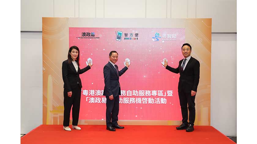 【特訊】爲促進灣區政務高質量發展,澳門特區政府與香港特區政府再度聯動合作,推進粵港澳高頻政務服務跨境通辦,在香港數字政策辦公室的大力協助下,自即日起,於香港“粵港澳跨境政務自助服務專區”設置“澳政易”自助服務機。啓用活動今天在香港庫務大樓舉行,由香港數字政策辦公室黃志光專員、廣東省政務服務和數據管理局顧君冬總工程師及澳門身份證明局陳婉麗副局長擔任主禮嘉賓。
