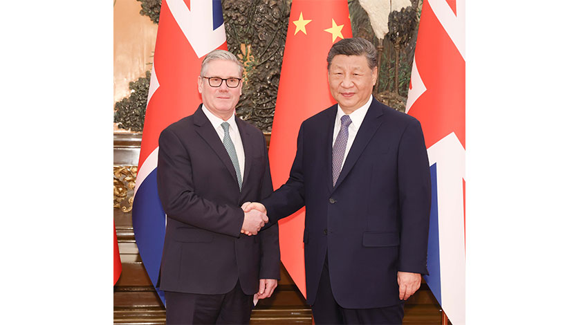 【中新社北京1月29日電】1月29日上午,中國國家主席習近平在北京人民大會堂會見來華進行正式訪問的英國首相斯塔默。雙方同意中英要發展長期穩定的全面戰略夥伴關係。