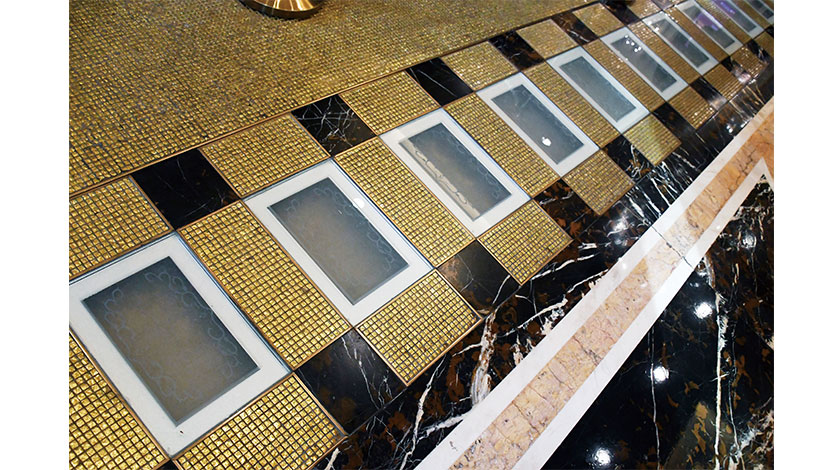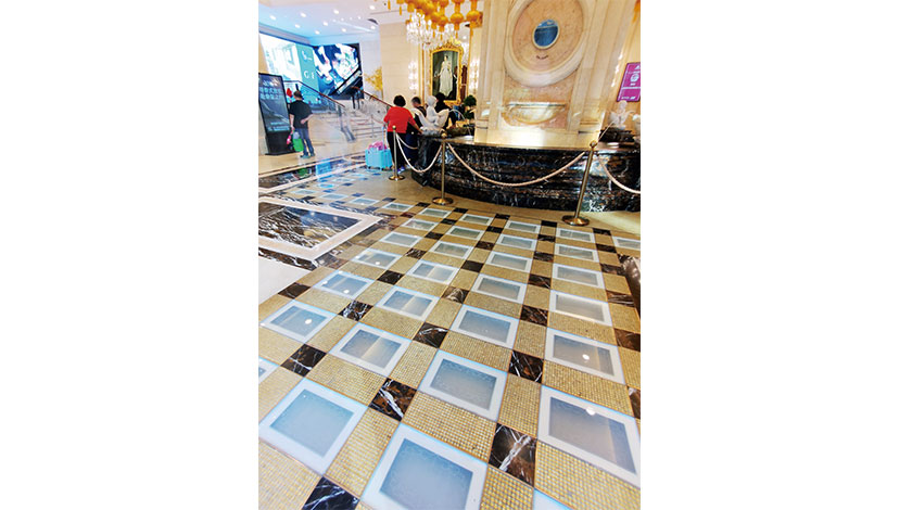 澳門英皇娛樂酒店二十年前開幕之時,大堂地面鑲嵌每塊重約一公斤的七十八塊金磚是酒店一大吸睛亮點,也成為一時佳話,不少遊人衝著金磚而來,多年來也不斷有旅客特意前來酒店觀摩地面的金磚,打卡一番。