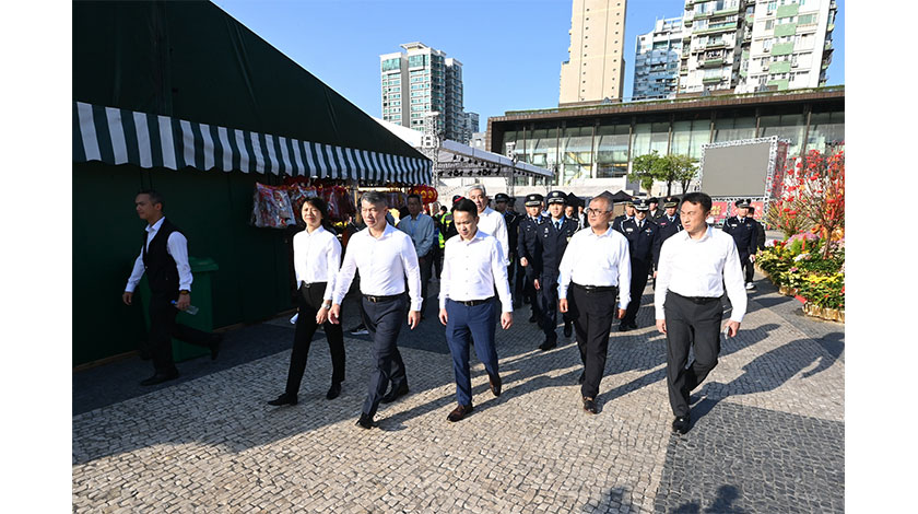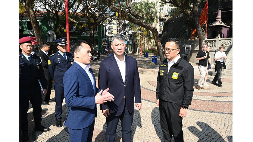 【特訊】新春佳節將至,澳門將舉行多項大型節慶活動,預計吸引大量市民及旅客參與。為確保節日期間社會治安穩定,保障公眾安全,警察總局局長梁文昌於昨日率領保安範疇領導及主管人員,聯同市政署、旅遊局及文化局等部門代表,先後前往媽閣廟、花車巡遊路線、塔石年宵市場等多個重點活動場地,實地視察各項活動的籌備進度,並檢視現場警力部署與安保工作。