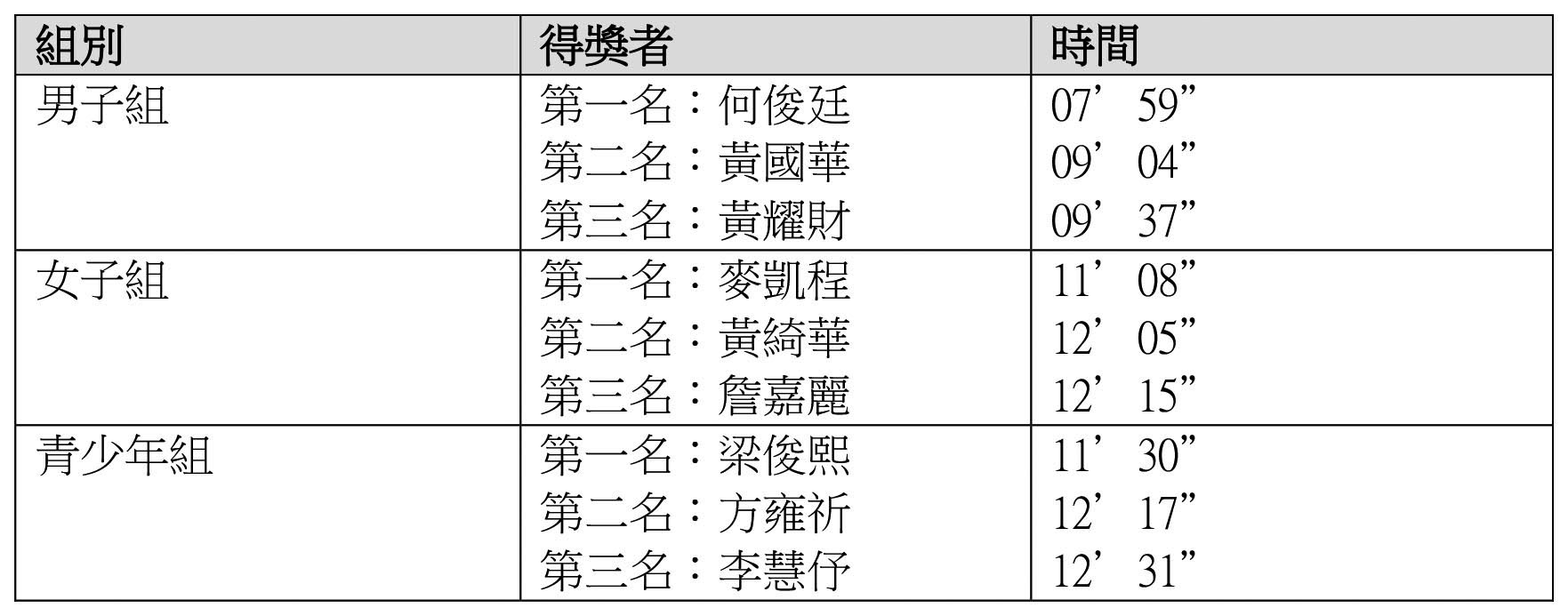 「駿馬獻瑞迎新歲」全程登塔賽事得獎名單︰