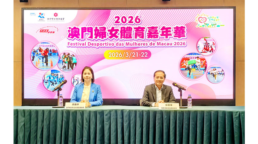 【特訊】體育局與澳門婦女聯合總會將於本年3月21日及22日舉行2026“澳門婦女體育嘉年華”,為一眾婦女帶來不同的運動體驗。主辦單位將透過活動推動婦女積極運動健體,在鼓勵婦女培養終身體育的健康生活模式同時,亦喚起社會各界對婦女身心健康的關注。