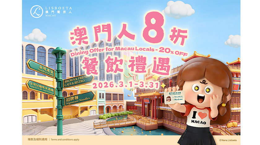 【特訊】澳門葡京人為進一步推動本地消費及豐富旅遊體驗,於2026年3月推出一系列餐飲及休閒娛樂專屬折扣優惠,為訪客帶來更多精彩選擇。