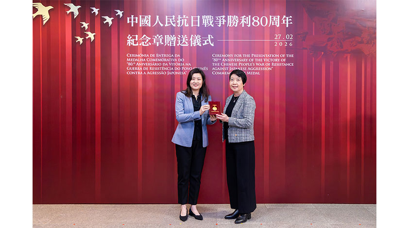 儀式上,國務院港澳事務辦公室五局副局長李麗代表中央人民政府向澳門特別行政區政府贈送紀念章,由文化局局長梁惠敏代表接收。見證嘉賓包括衛生局副局長鄭成業、教育及青年發展局副局長黃嘉祺,以及紀念中國人民抗日戰爭暨世界反法西斯戰爭勝利80周年系列活動文化界、教育界及醫療界活動籌備委員會代表等。