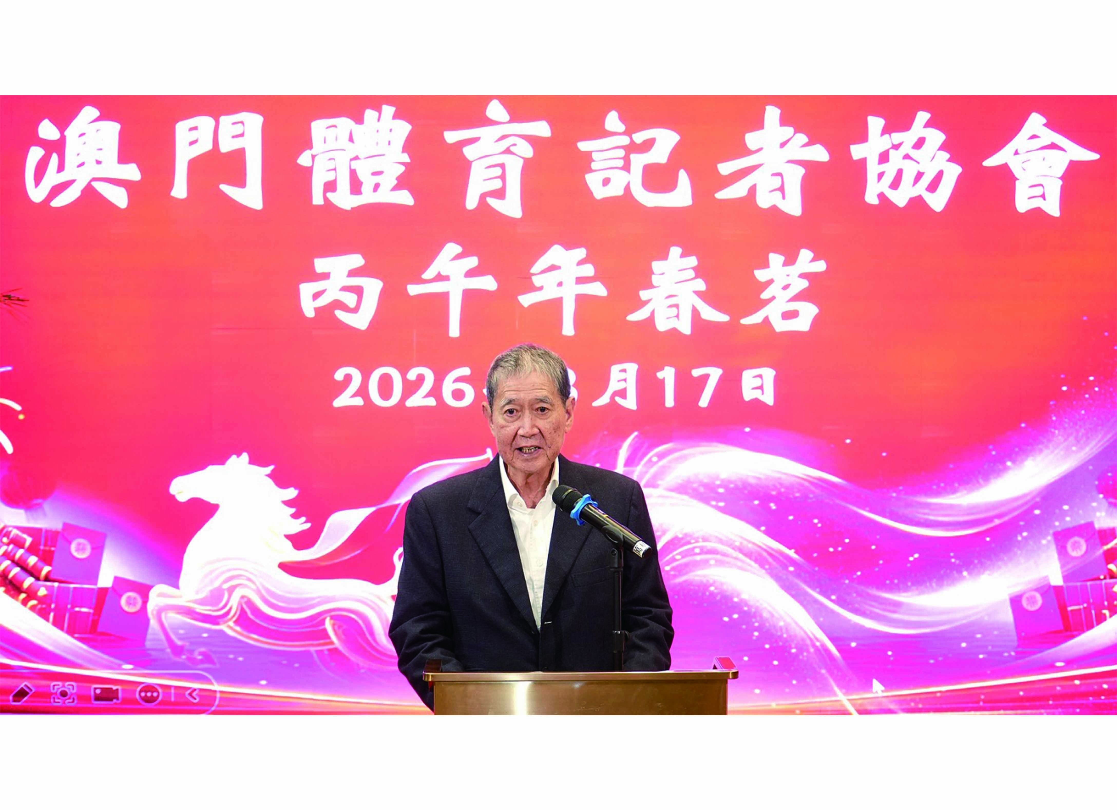 馬有恆指出,隨著粵港澳大灣區融合,澳門體育事業將穩步發展,新的一年,澳門體壇將迎來愛知名古屋亞運會、海南省亞沙運動會、乒乓球世界盃等國內外大型賽事,體記協將繼續團結會員,堅守專業操守,積極宣傳澳門體育成就,在各方關懷指導下,摧手推動澳門體育及傳媒事業再上新台階。
