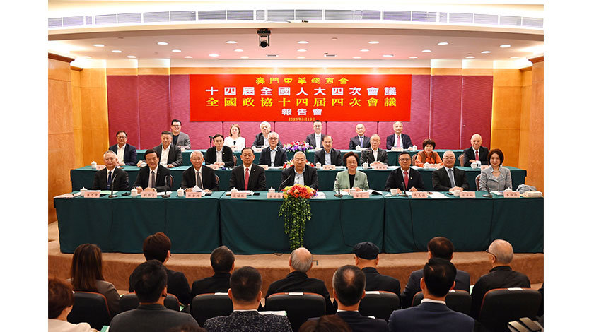 【特訊】澳門中華總商會昨(19)日下午六時在會址舉行「十四屆全國人大四次會議、全國政協十四屆四次會議報告會」。報告會由全國政協常委、中總會長崔世昌主持。全國政協委員、中總副監事長梁少培,全國政協委員、中總會董李佳鳴,全國人大代表、中總副會長劉藝良,全國人大代表、中總副理事長蕭志偉,先後向與會的會長、會董、理事、監事報告「兩會」基本情況和暢談參加「兩會」的感受和體會。中總副會長范耀勝、賀定一、林金城,理事長馬志毅等逾百人出席報告會。