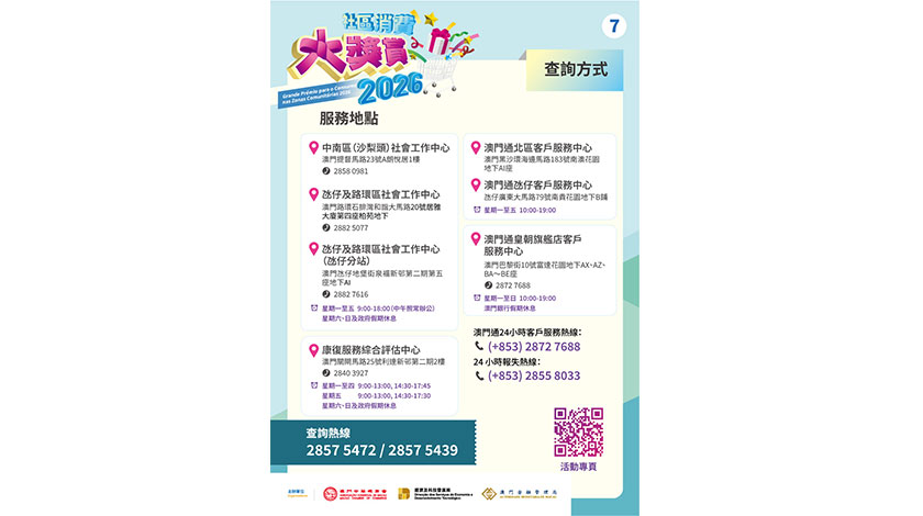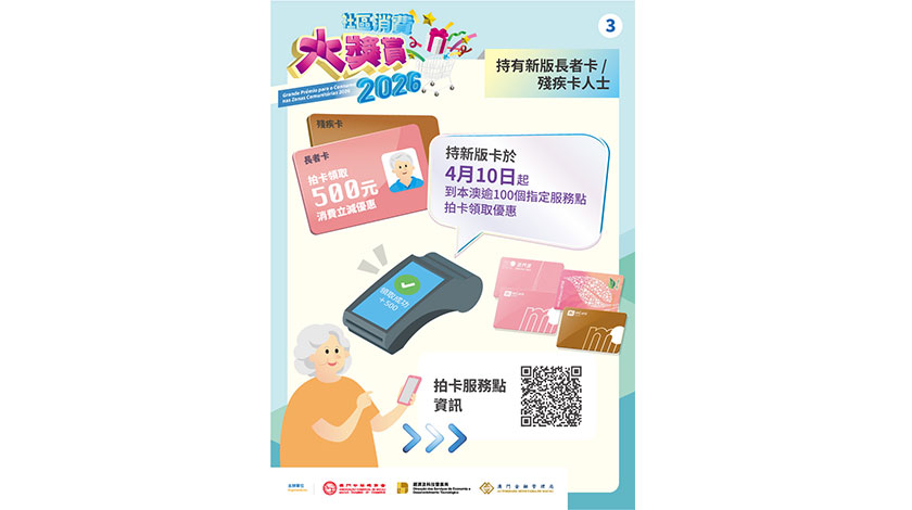 活動將於4月10日正式啟動,經科局冀在商會、社團和居民的積極配合和參與下,為本澳消費市場注入活力,盤活社區經濟,推動經濟適度多元發展。市民如欲了解更多活動詳情,可瀏覽“2026社區消費大獎賞”活動專頁(https://www.macaospendingrewards.com/)或致電熱線電話(28575472或28575439)查詢。