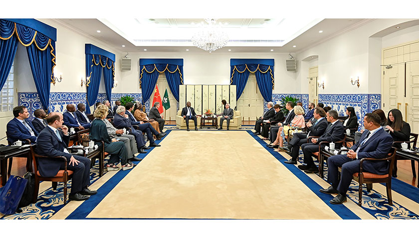 △行政長官岑浩輝昨日上午在政府總部會見第43屆葡語都市聯盟(UCCLA)會員大會代表團一行,雙方就持續深化彼此間多方面的聯繫和合作交流意見。