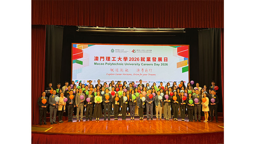 「澳門理工大學二零二六就業發展日」開幕儀式昨假該大學禮堂舉行,由中聯辦教育和青年部處長岑嘉儀、勞工事務局副局長陳子慧、社會保障基金中央公積金制度廳廳長楊婉麗、教育及青年發展局青年發展處處長趙寶威、澳理大副校長李雁蓮等嘉賓,及各學院院長以及一眾參展機構企業負責人及代表主禮啟動儀式。