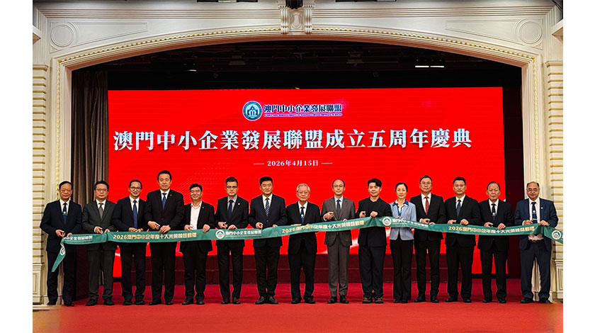 【本報訊】澳門中小企業發展聯盟昨假萬豪軒舉行成立五週年會慶典禮,同步進行「二零二六澳門中小企十大光榮榜」啟動儀式。該會會長葉紹文致辭時表示,未來,聯盟將繼續發揮橋樑作用,深化與政府及社會各界的協作,助力會員把握橫琴粵澳深度合作區及粵港澳大灣區的發展機遇,為澳門中小企業創造更優質的營商環境,推動經濟適度多元發展。