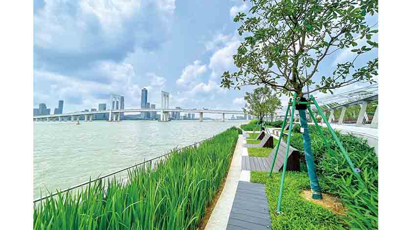 南岸海濱綠廊二期工程分三區,範圍由嘉樂庇總督大橋至融和門之間,建造總面積約六萬平方米。一區及二區已按計劃開放,三區亦已於去年年底開展工程,南岸海濱綠廊二期休憩區的全部工程預計於 2027 年上半年完成。整個項目設計以親子遊樂、休閒康體、親水景觀為功能空間的三大主軸,打造為澳門半島南岸的綠色走廊,為市民提供一個多功能的海濱康樂休閒場所,同時完善城市沿岸景觀。